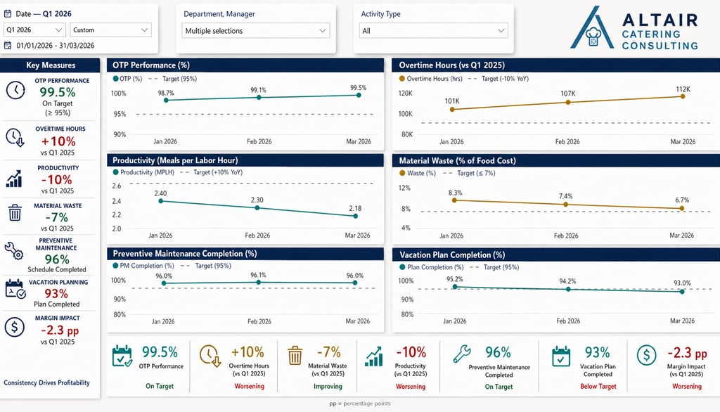 A catering unit can achieve OTP by spending more every day. That does not make the operation efficient, and it does not make the business more profitable.